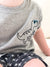 Grey T-Shirt with black dinosaur outline and turquoise sunglasses