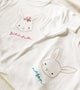 Our sweet little romper is perfect for a special new arrival. Featuring an adorable bunny design, in a sketch style design. There are poppers located around the nappy area, and the neckline folds down for easy access on and off too.