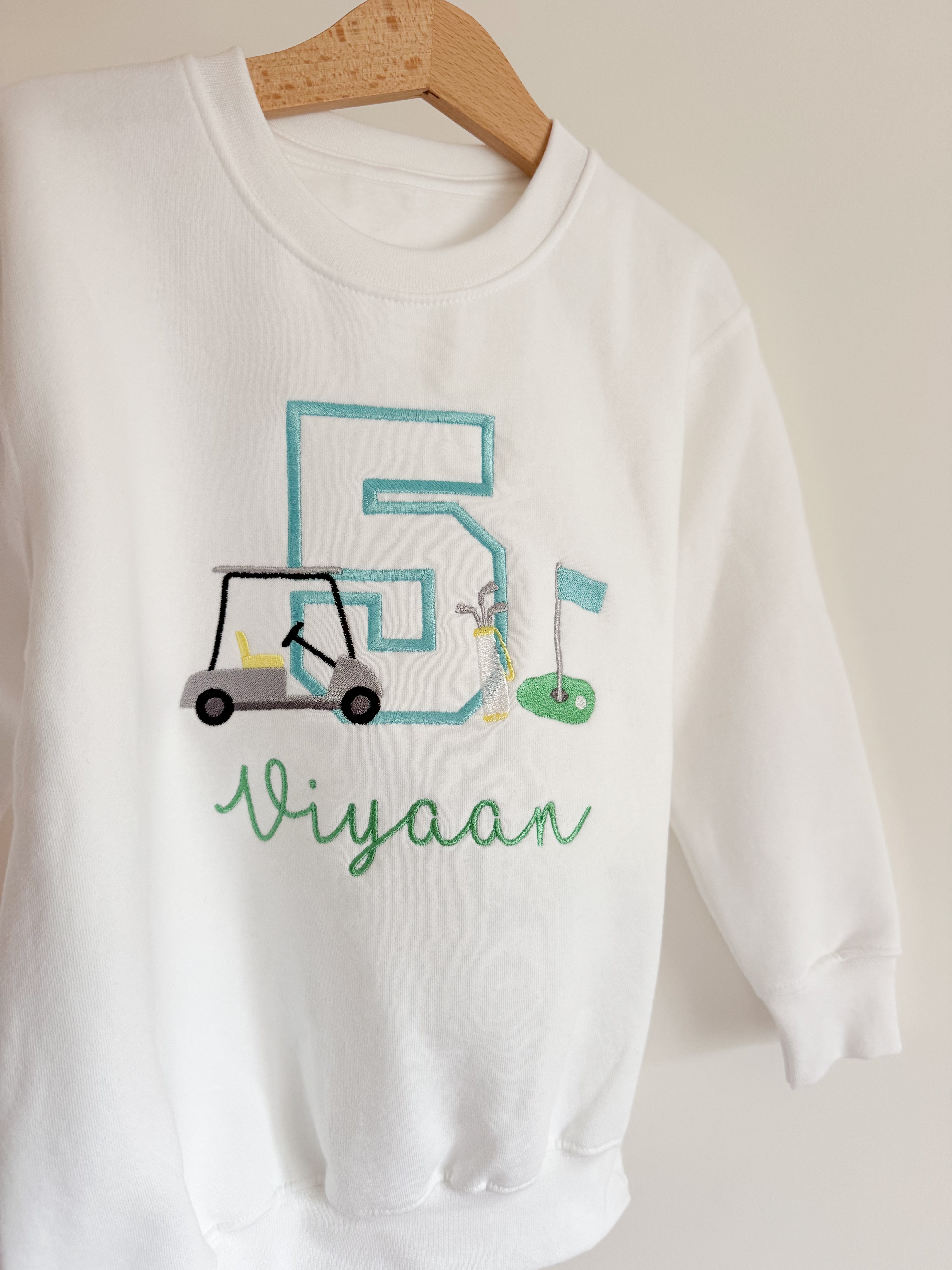 Featuring their age, a fun golf-themed design and your little one’s name, this sweater is for birthday's on par.