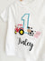 White 1-2 years '1 in turquoise, red tractor, name: Finley'