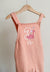 Dusky pink dungarees, happy sunshine design, peach number 1, pink name, font 2 (Mya)
