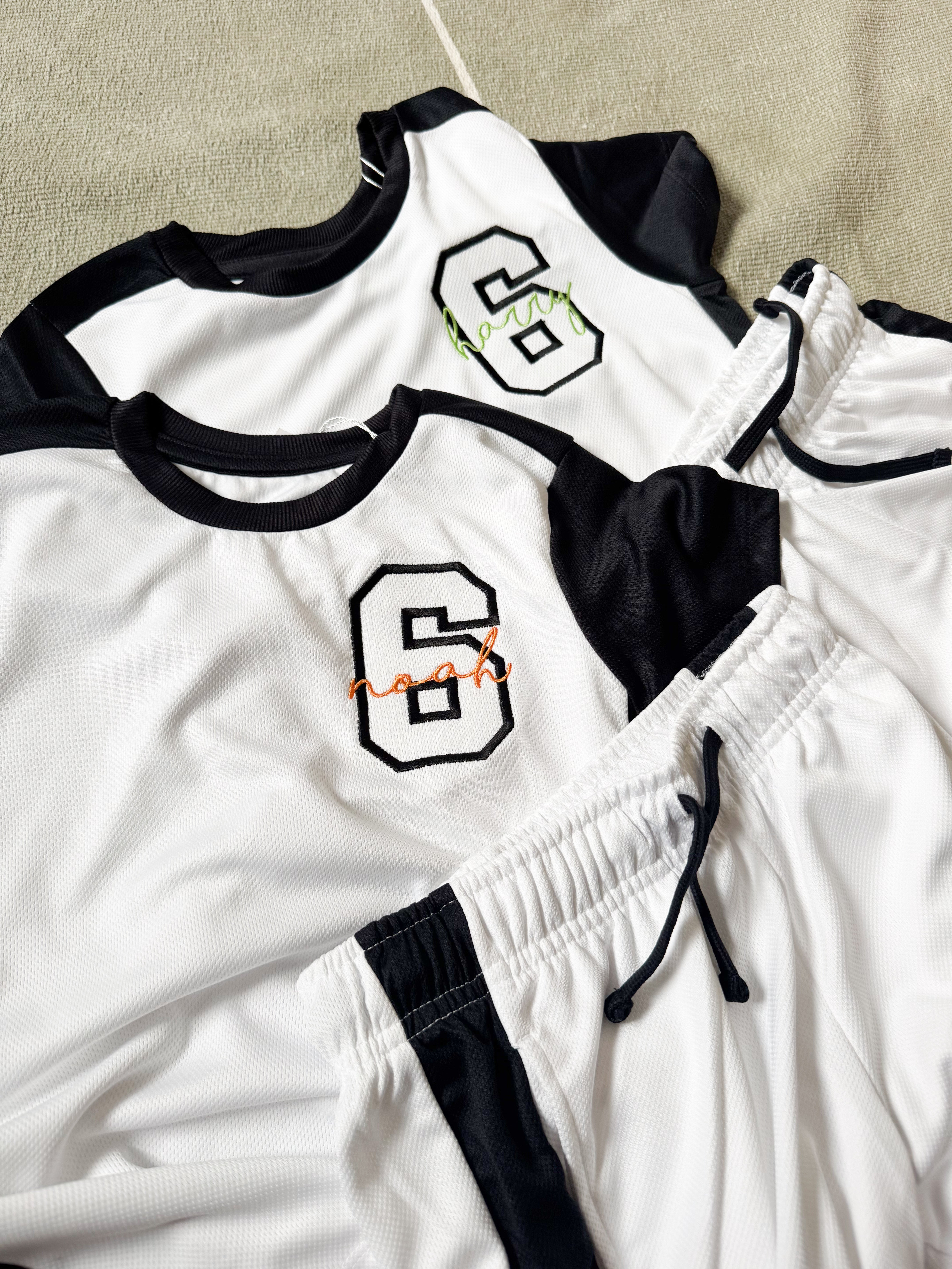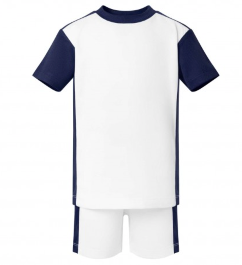 Each set comes with a personalised T-shirt and a coordinating pair of shorts which are left blank.